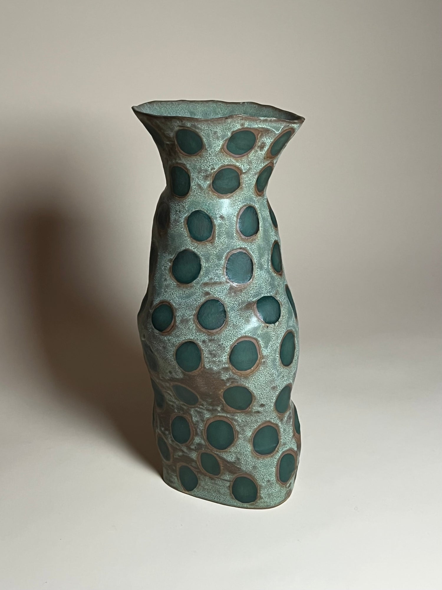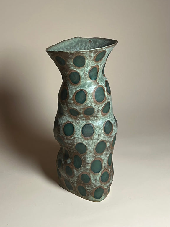 Jenny Rice's work explores the tension between her intentions for the clay and its own instinct to give into natural forces - time, temperature, humidity, and gravity. In this collaboration, unplanned gestures and irregular forms emerge, inviting her to let go of perfection and embrace the unexpected.